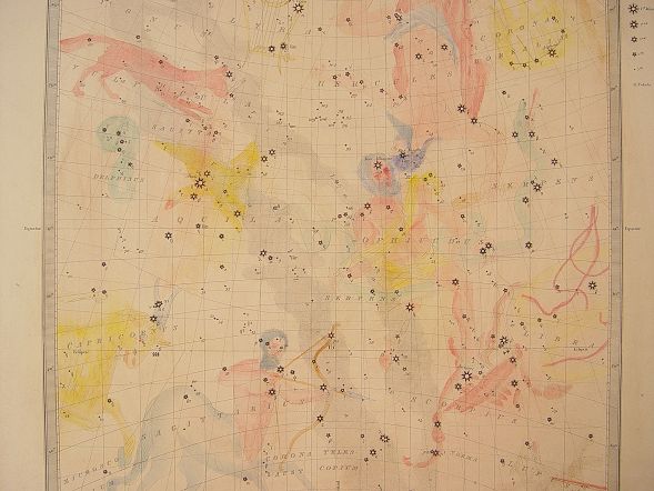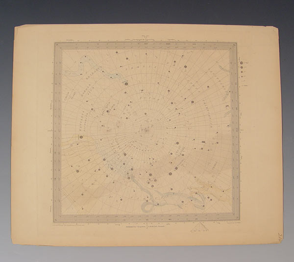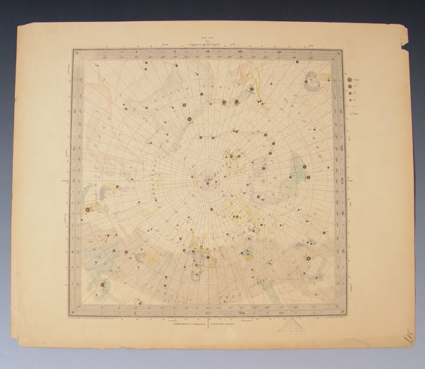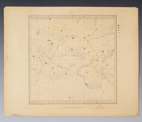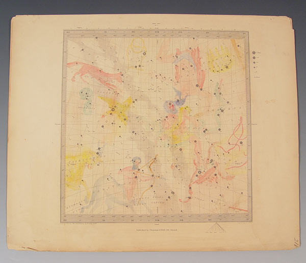 4 CA. 1830 ENGRAVED HAND TINTED CELESTIAL MAPS: Circa 1830, ''The Constellations by W. Clark'', drawn by W. Newton, published by Chapman & Hall, and engraved by J. & C. Walker. Four of a set of six. Measures 13'' x 16'' overall.