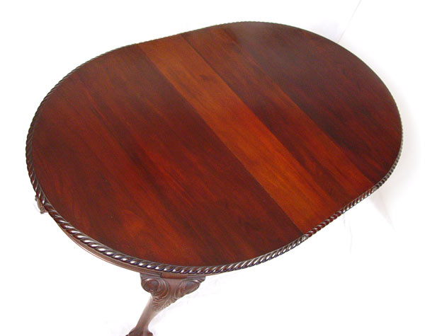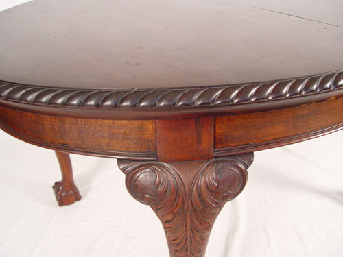 BALL & CLAW FOOT MAHOGANY DINING TABLE: Crank slide table with one leaf. Measures 28 1/4'' h. x 53 1/2'' x 41''. Leaf measures 18 1/4''.