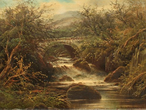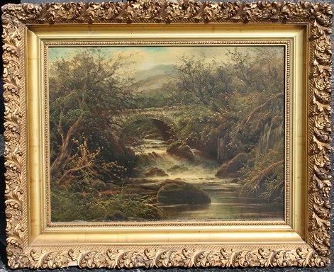ENGLISH STREAM PAINTING ''NEAR BELTIUMYEARD''? SIGNED T.CULTS?: 16'' x 20'', encased in period carved and gilded gesso frame with some wear, 22'' x 27 1/2''.