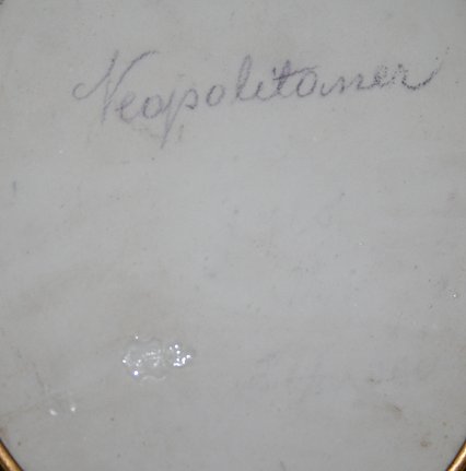 EXQUISITE HUTSCHENREUTHER PORTRAIT PAINTING ON PORCELAIN: Approx. 4 3/4'' x 3 1/2'' oval, signed Korhl?, marked verso Neopolitaner, encased in period gilt metal foliate motif frame, 5 1/2'' x 4 1/4''.