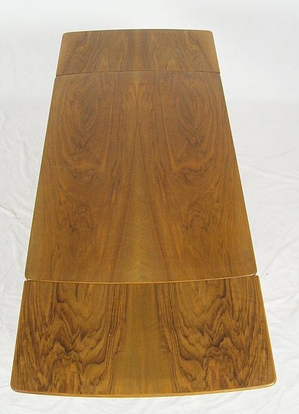 SCHWARTZ DANISH MID CENTURY MODERN EXTENSION TEA TABLE: Branded Gunnar Schwartz Company, Made in Denmark, Los Angeles California. On large castors, measures 25 3/4'' h x 33 3/4'' x 21'', expands to 56''.