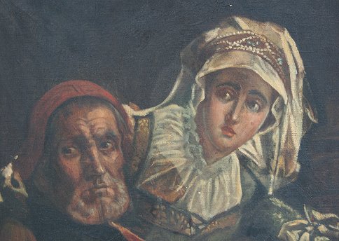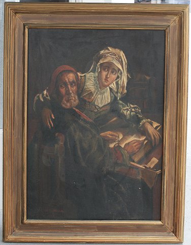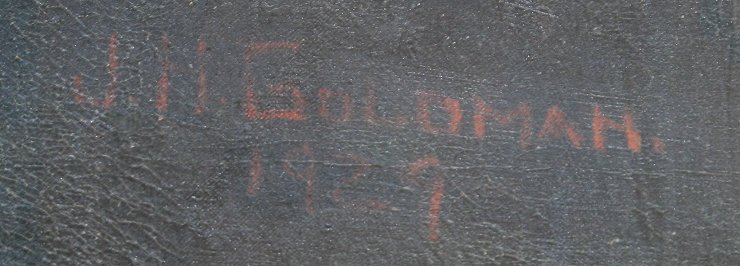 EARLY 20TH C. GENRE PAINTING ''SURPRISED'': OIL/Canvas, signed J.N. Goldman, dated 1929, 40 1/4'' x 29 1/4'', framed, 49'' x 38''.