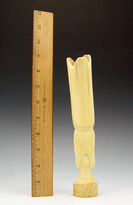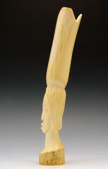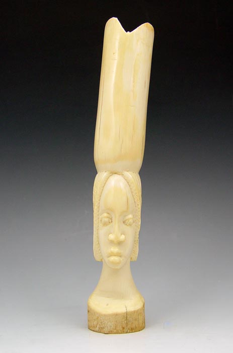 AFRICAN CARVED IVORY: Carved from a single tusk, 9'' length. Marked on base Abdou Yalo Artisan Ivorier, Bangu R.C.