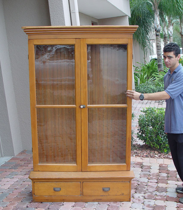 LATE VICTORIAN DOUBLE DOOR BOOKCASE: 2 glass doors over 2 half length drawers, 4 interior shelves. 70'' h. x 42 1/2'' x 17 1/2''.