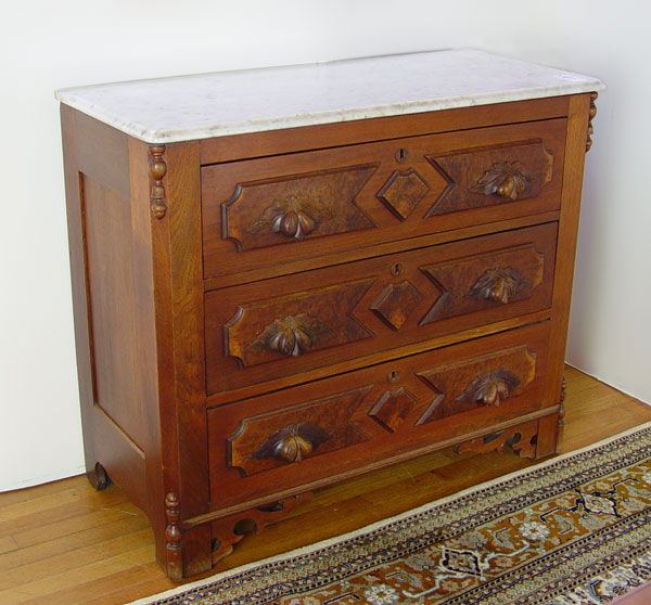 3 DRAWER VICTORIAN WALNUT DRESSER: Marble top. 34 1/2'' h. x 41 1/4'' x 19 1/2''