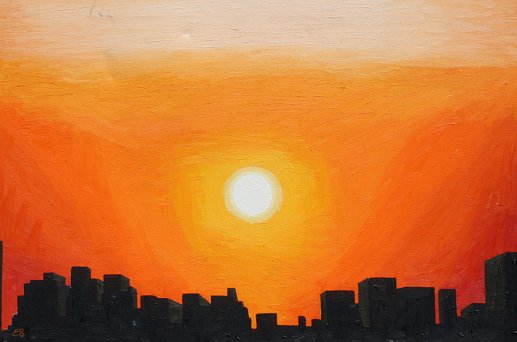 SANCHEZ, Emilio, (Cuba, 1921-): Sunrise over City, OIL/Canvas, 20'' x 30'', monogrammed. From the Dr. Andrew Haraway Collection.
