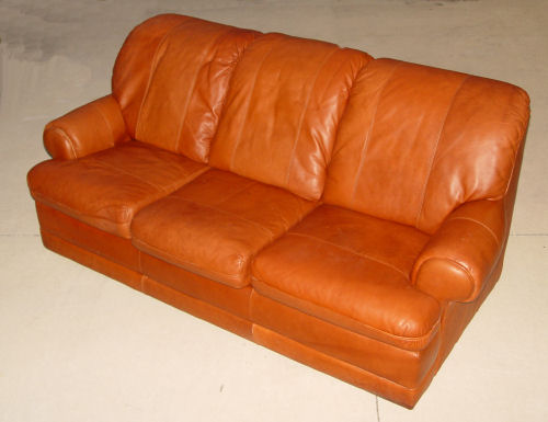 BROWN LEATHER FLEXSTEEL SOFA: 75'' long.