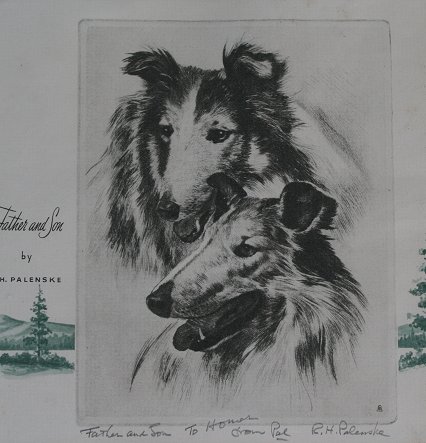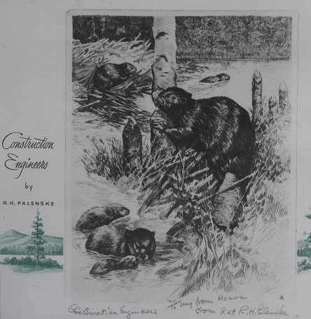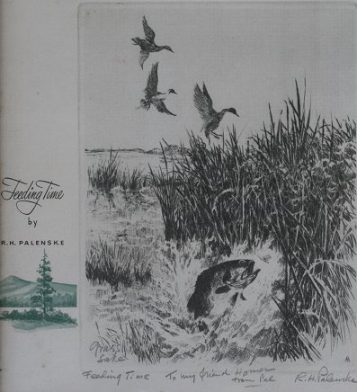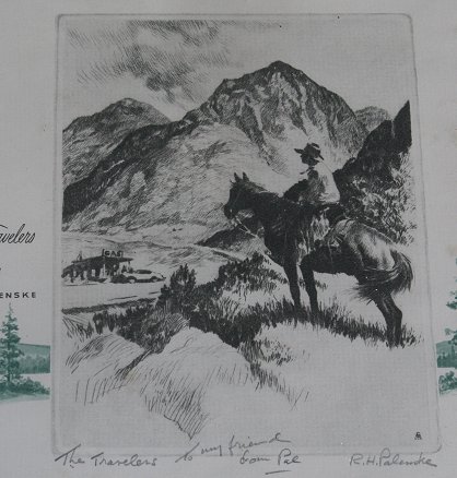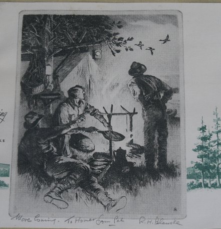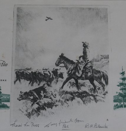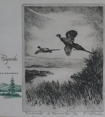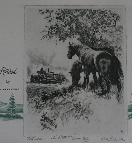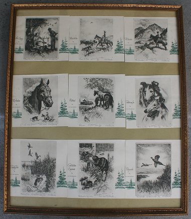 PALENSKE, Reinhold H., (American, 1884-1954): Collection of 9 Etchings dedicated to Homer, from Pal, More Coming, The Boss, The Travelers, Feeding Time, Construction Engineers, Father and Son, Retired, Ringnecks, and The Arabian; 8'' x 8 1/2'', pencil signed, in one frame.