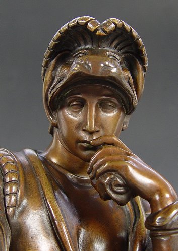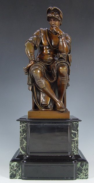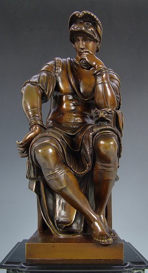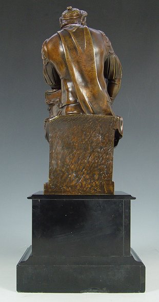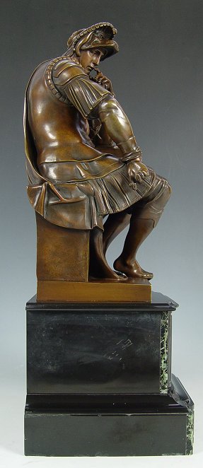 A CONTINENTAL BRONZE FIGURE OF LORENZO DI MEDICI, DUKE OF URBINO: 16'' H., exceptional mixed material plinth, 23'' h.