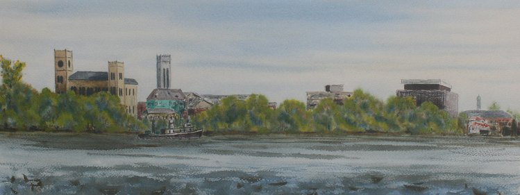 REINIKE III, Charles, (American, 1947-): Mississippi Coast, Watercolor, sight size 10'' x 28 1/2'', signed, framed, 19'' x 36''. Louisiana Artist.
