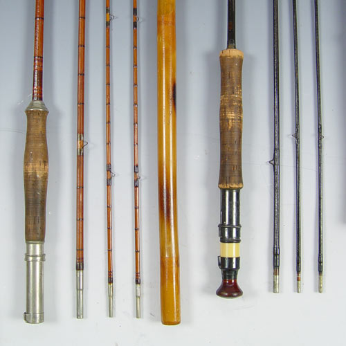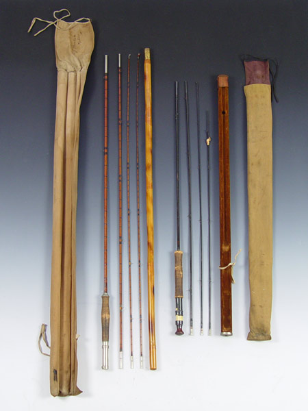 H. L. LEONARD VINTAGE 10' BAMBOO FLY ROD: Comes with 2 tips in bamboo case. Marked ''The H. L. Leonard Rod, Leonard Mills Makers''. Original cloth sheath. Sold with second rod, Divine Rod Utica New York. 8' with 2 tips., original holder and cloth sheath.