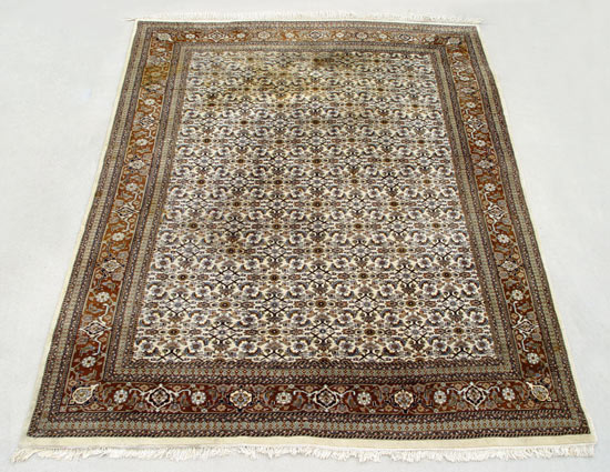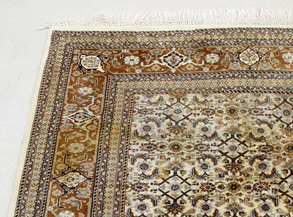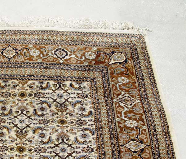 HAND TIED WOOL PERSIAN CARPET: Repeating all over floral design on cream ground, floral border. Approx 10' x 8'.