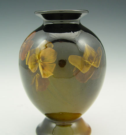 ARTIST SIGNED ROOKWOOD POTTERY VASE: Elizabeth Neave Lincoln pansy decorated standard glaze vase. 5'' Date mark indicates 1900.
