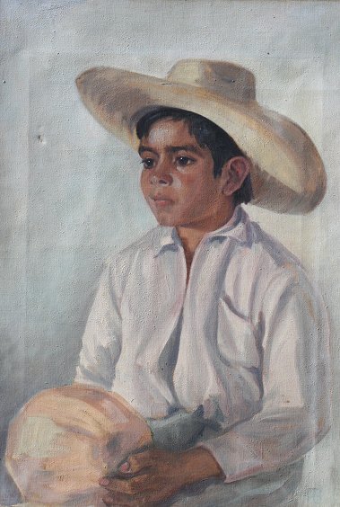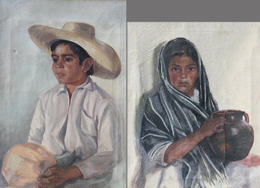 BRIDGES, Eleanor Massey, (American, 20th C.): 2 Oil/Canvas Portraits, Mexican Girl, 24'' x 20'';& Boy, 27'' x 19'', both bear the artist's cipher.