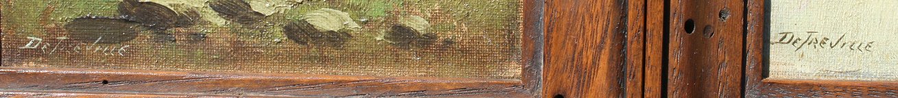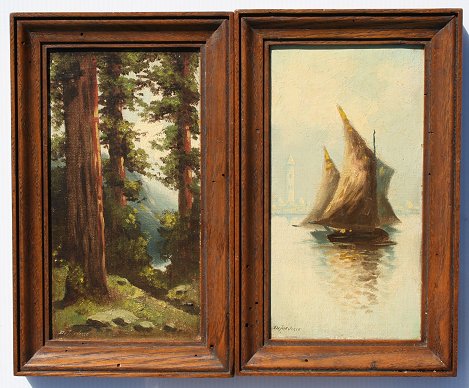 DETREVILLE, Richard, (American, 1854-1929): Pair OIL/Board, Landscape & Ship, 9'' x 5'', signed, framed, 11'' x 7''.