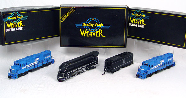 3 PIECE WEAVER TRAINS ENGINES IN BOXES: To include 1) #G1704LP New York, New Haven & Hartford 1-5 4-6-4, 3 rail with sound. 2) Two GP38-2 Diesel locomotives, 3 rail 7510 / 8049.