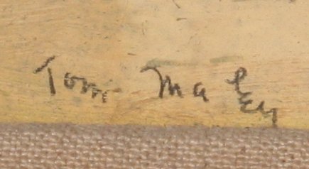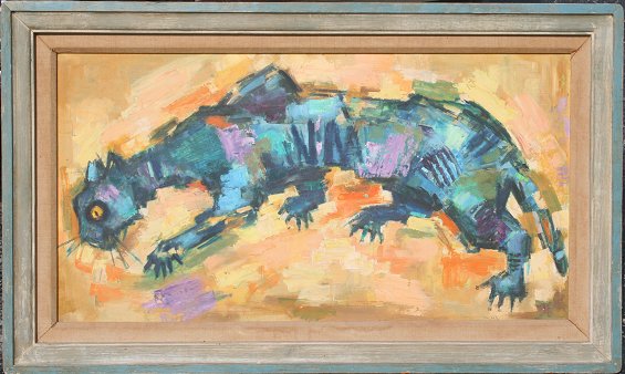 MALEY, Thomas, (American, 20th c): Abstract Prowling Cat, Oil/Masonite, 20'' x 38'', signed, worn painted frame, 27'' x 45''.