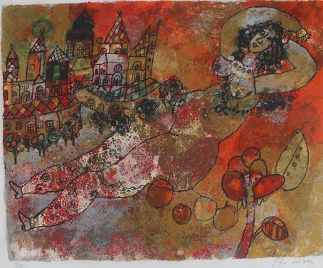 TOBIASSE, Theo, (Israel, 1927-): Nude Woman with City, Lithograph, sight size 21'' x 27'', pencil signed, numbered 162/200, framed, 28 1/2'' x 34 1/2''.