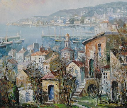 DELARUE, Lucien, (French, 1925-): ''Port de Villefranche, Cote d' Azur'', OIL/Canvas, 18'' X 21 5/8'', signed, unframed, titled verso.