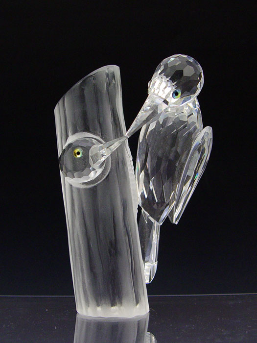 SWAROVSKI CRYSTAL WOODPECKERS: 1988 SCS annual edition Woodpecker and Baby in frosted tree. 4''h.