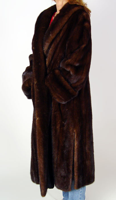 FABULOUS FULL LENGTH MINK COAT: With full sleeves folding up to 3/4 length, slash pockets, fully lined. 45'' long, 23'' shoulder to shoulder. Maas Bros. label.