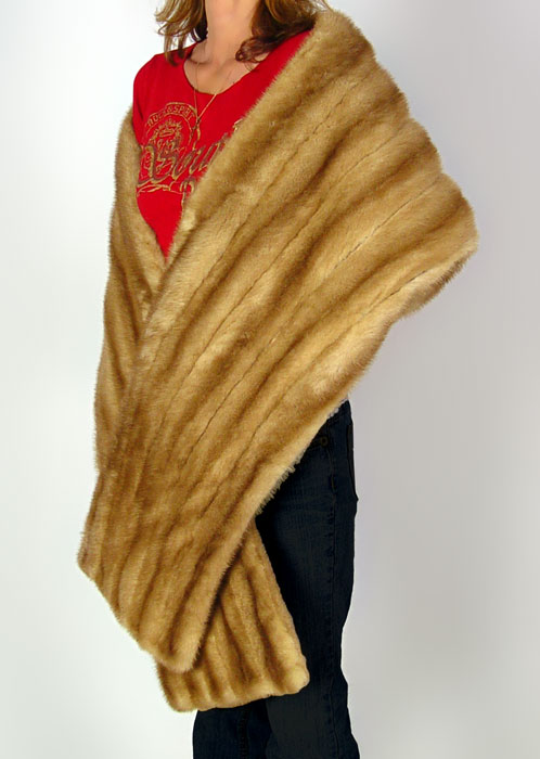 ALMOST 7 FEET LONG BLOND MINK WRAP: Five pelts wide, fully lined. Maas Bros. label. 6 ft. 10'' length x 17'' wide at the most, and tapers to 10'' wide.