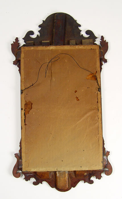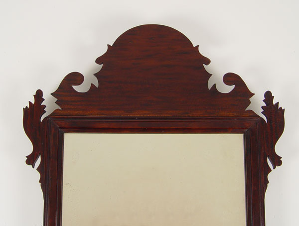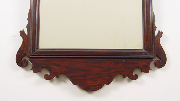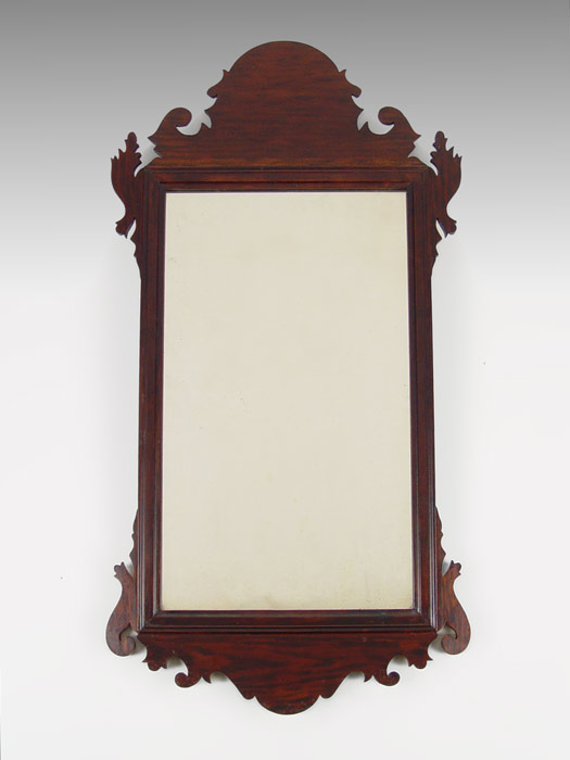 19TH CENTURY CHIPPENDALE MIRROR: Shaped mahogany frame, original looking glass. 32 1/4'' x 17 1/2''.
