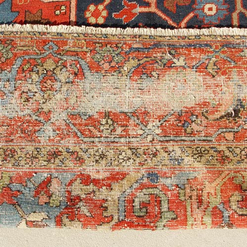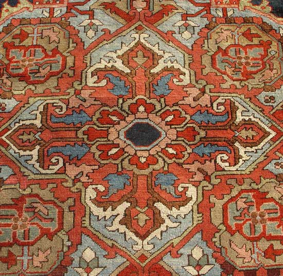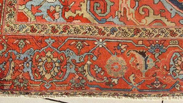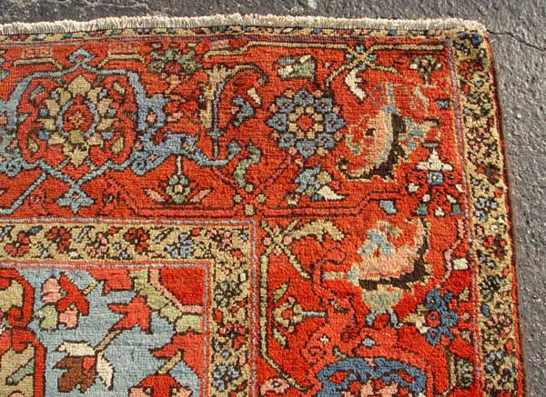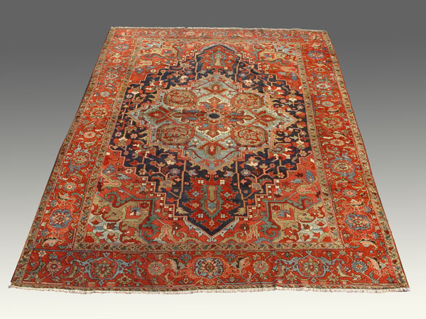ANTIQUE SERAPI HAND TIED RUG CARPET CA. 1890'S: Approx 12' 8'' x 9' 4''. Red field with serapi design.