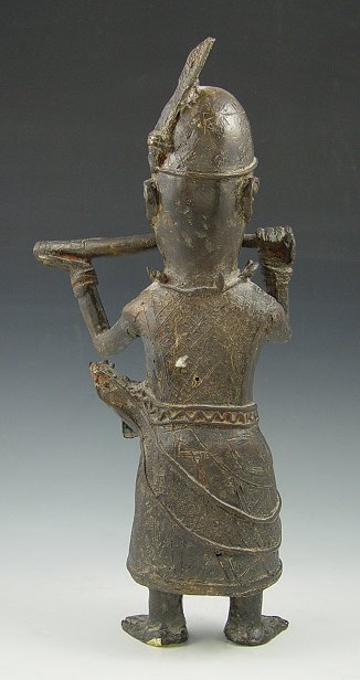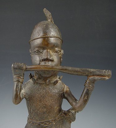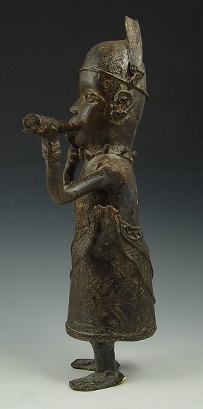 AFRICAN BENIN BRASS FLUTE PLAYER: 15 1/2'' h.