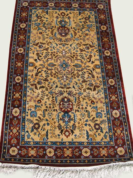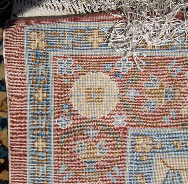 HAND TIED TINTSIN CHINESE SILK RUG: Approx. 3' x 5' 2'', pleasing browns and blue color tones.