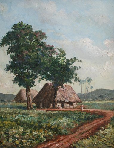 MELERO, Aurelio, (Cuban, 1870-1929): Landscape with Hut, OIL/Board, 13 1/2'' x 10 1/2'', signed, framed, 19'' x 16'', old Cuban label verso, Taller de Pintura.