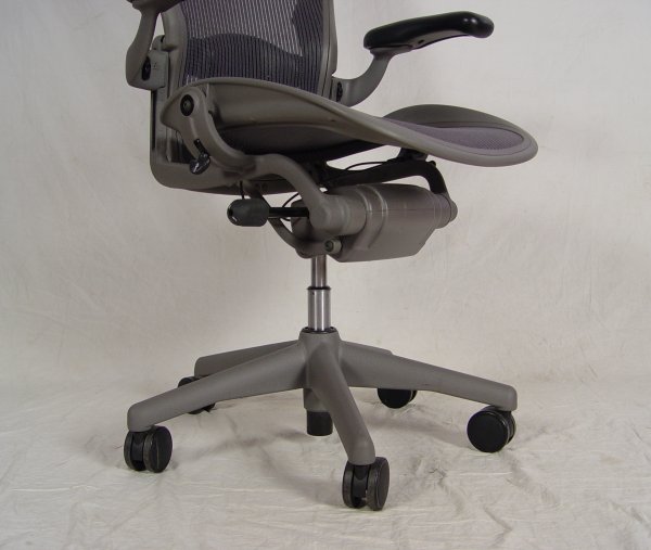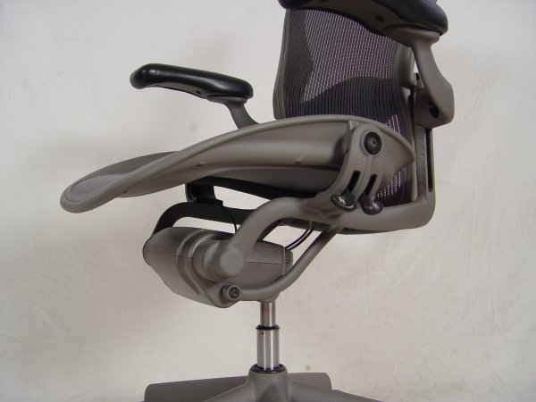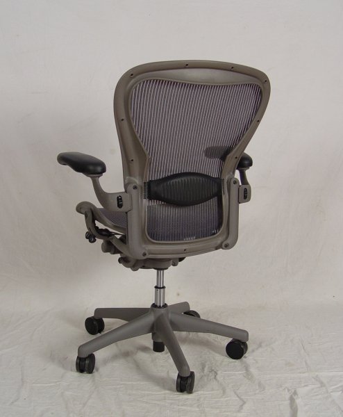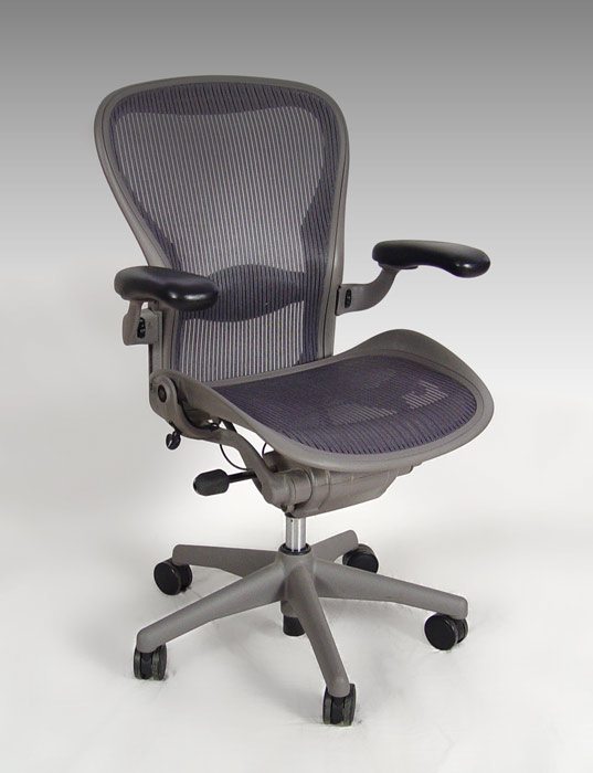 HERMAN MILLER AERON DESK / TASK CHAIR: Fully adjustable model, size C, standard lumbar support, vinyl armrests, 43 3/4'' h. x 26 1/2'' x 27''.