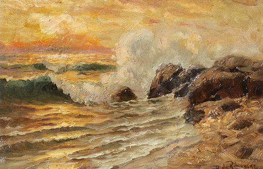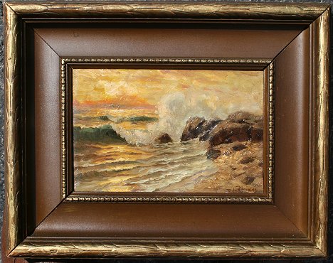RIBCOWSKY, Dey de, (American, 1880-1936): California Seascape, Oil/Canvas, 6 1/8'' x 9'', signed, carved gilded and painted period frame, 11 3/4'' x 14 3/4''.