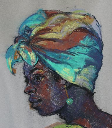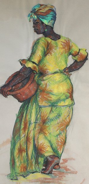 LARGE PASTEL OF NEGRO WOMAN, MONOGRAMMED LTS: Superbly executed, 50'' x 25'', framed, 58'' x 33''.