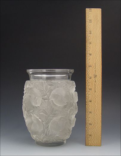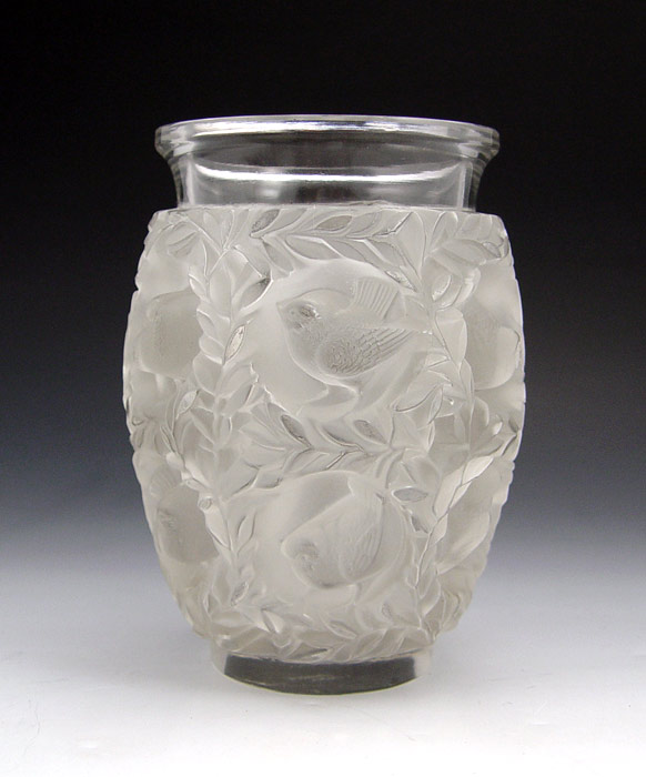 LALIQUE BAGATELLE BIRD VASE: 6 1/2'' tall. Free of chips, cracks or repairs. Scratches on the underside.