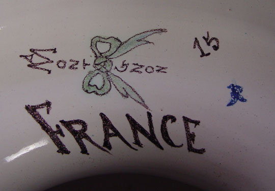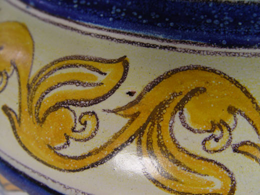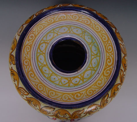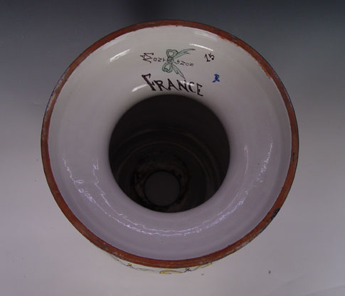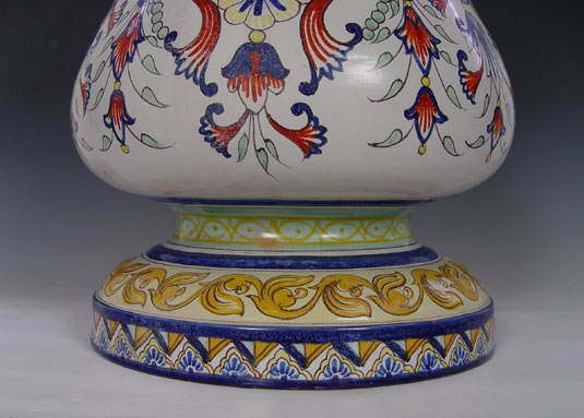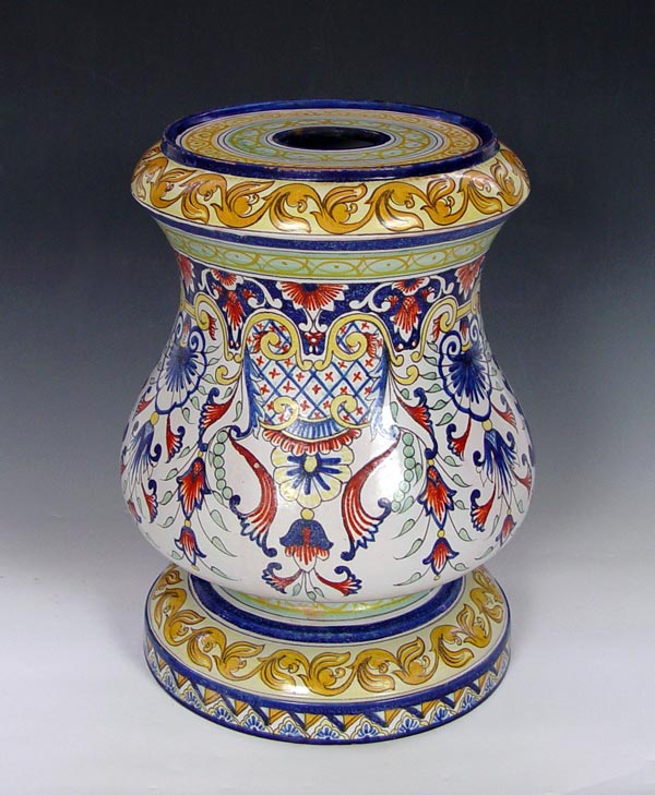 MONTAGNON FRENCH FAIENCE PEDESTAL STAND: Brightly painted earthenware, 21'' tall. Will hold a pot 11'' dia.