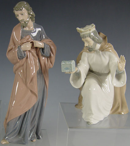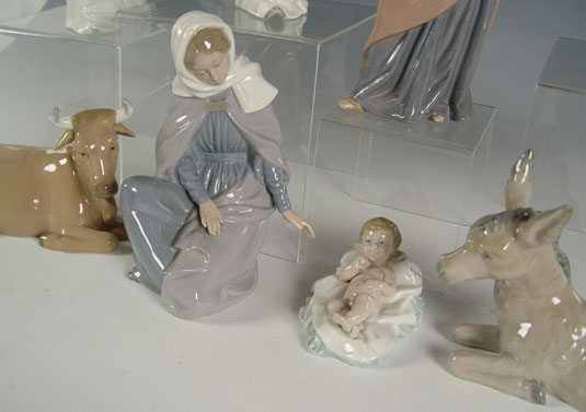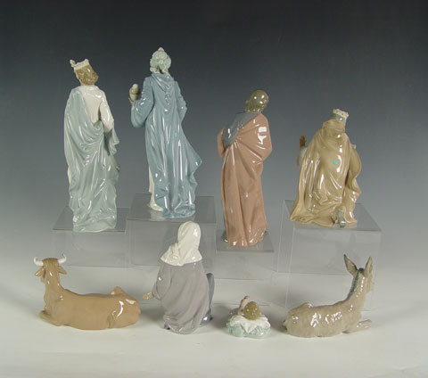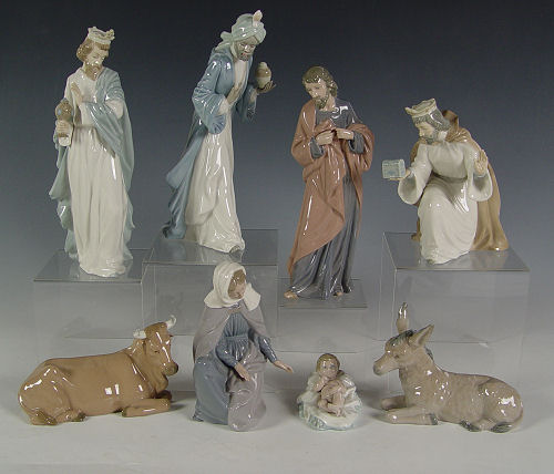 NAO BY LLADRO 8 PIECE NATIVITY SET: Includes the Holy Child, Mary, Joseph, the Three Wise Men, a donkey and a cow. The tallest is 11''.