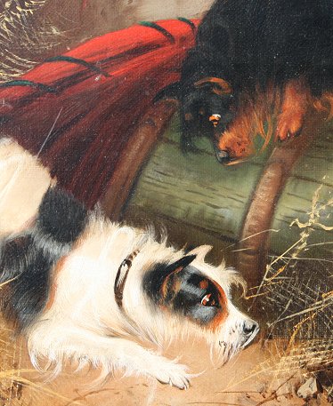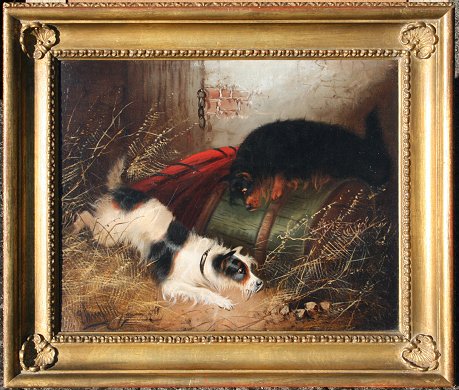 ARMFIELD, Ed, (British, 1817-1896): Terriers Ratting, Oil/Canvas, 12'' x 15'', signed, gilded gesso frame, 16 1/2'' x 17 1/2'', label verso.