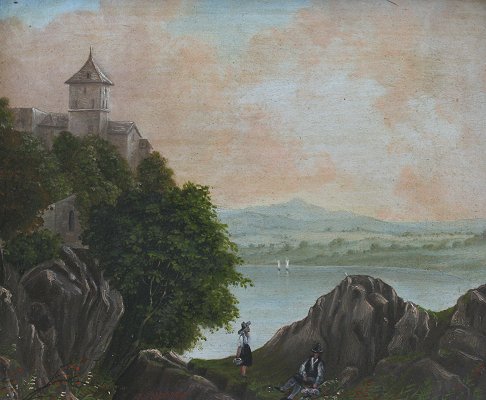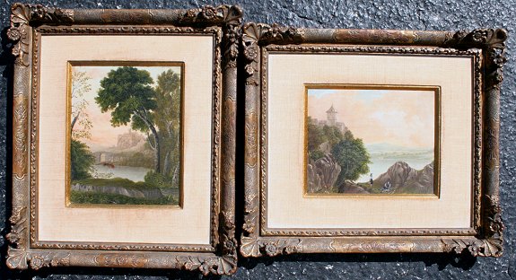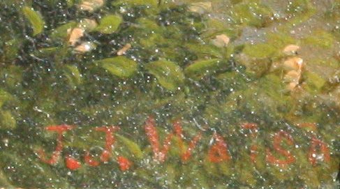 PAIR OF 19TH C. LANDSCAPES SIGNED J.J. WALSH: Cattle in stream 13 1/2'' x 11 1/2'', Figures in Landscape, 11 1/2'' x 13 1/2'', matching carved and gilded frames with floral motif, 16'' x 14'', and 14'' x 16'' respectively.