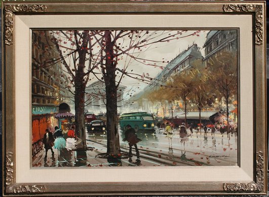SEVAL, M., (French, 20th C.): Parisian Street Scene, OIL/Canvas, 24'' x 36'', signed, framed, 33 1/3'' x 44 1/2''.