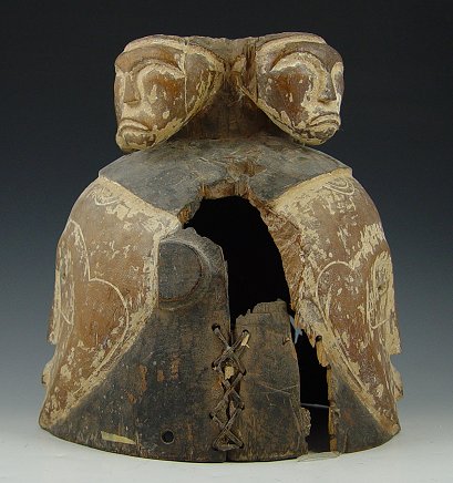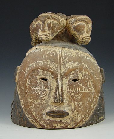AFRICAN CARVED WOOD MASK BAULE: 11'' h., 9'' diam. Note damage.