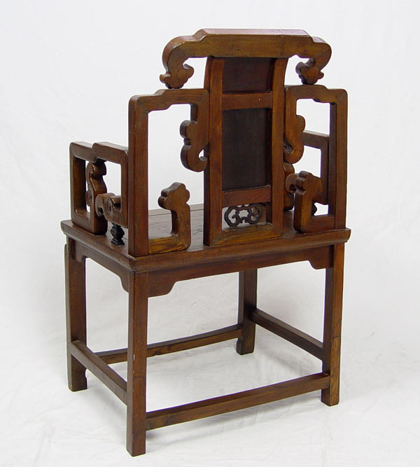 LATE 19TH C CHINESE ARM CHAIR: Elm with ironwood inserts, 37''h. x 23 3/4''w. x 17 1/4''d.