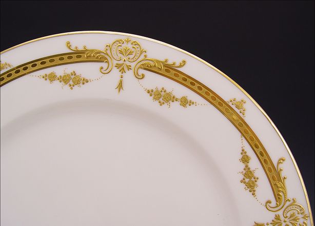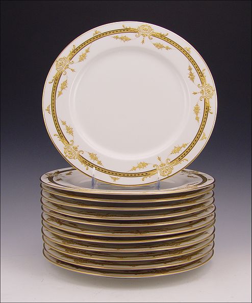 SET OF 12 FRENCH LIMOGES RICHLY DECORATED SERVICE PLATES: White ware mark of Bawo & Dotter Elite Works and decorating mark of George Borgfeldt. After 1920s. 10 1/2'' dia.