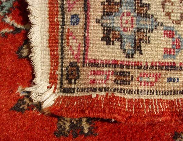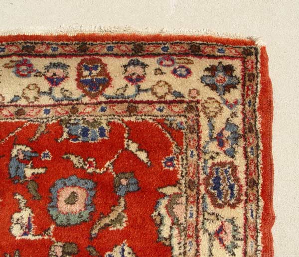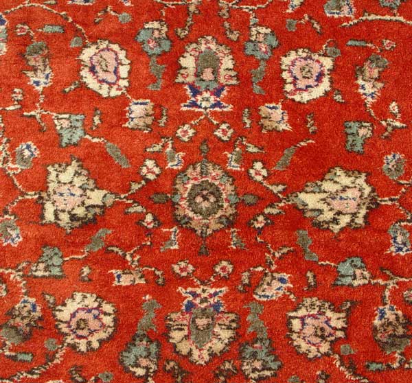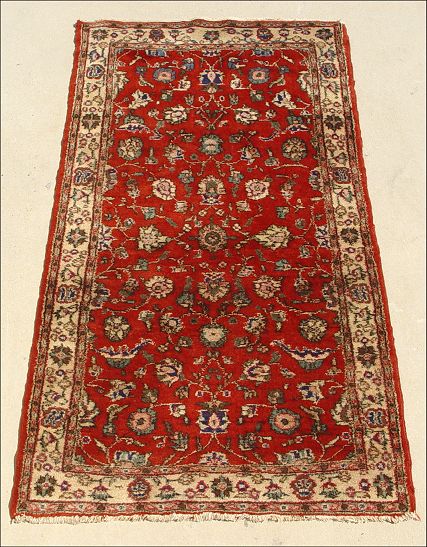 TURKISH MAHAL DESIGN RUG: Approx. 4' x 7'2''. Red field, floral design.