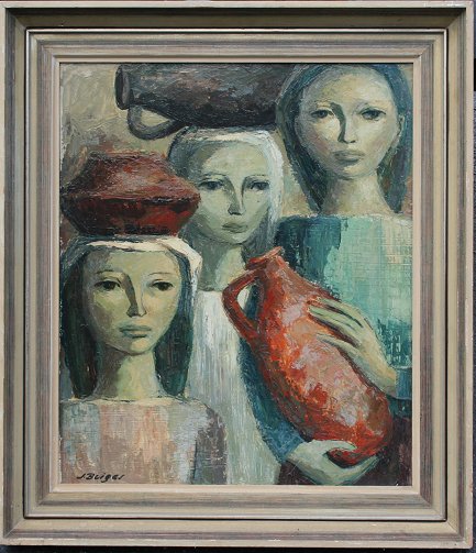 BUIGAS, Jose, (Spanish, 1927-): 3 women Oil/Masonite, 26'' x 21 1/2'', framed 30 1/2'' x 27 1/2''