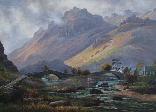BARNES, J., (English, 19/20th C.): Highland Landscape, Oil/Canvas, 20'' x 28'', signed and dated 1900, gilded gesso painted frame, 28'' x 36''.