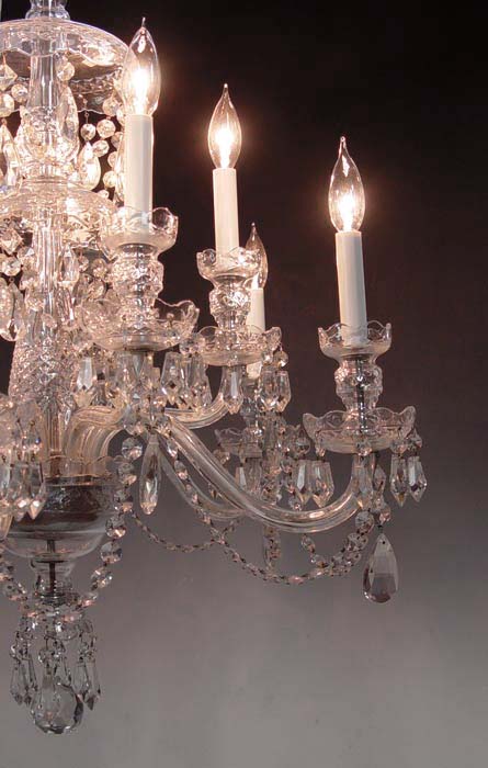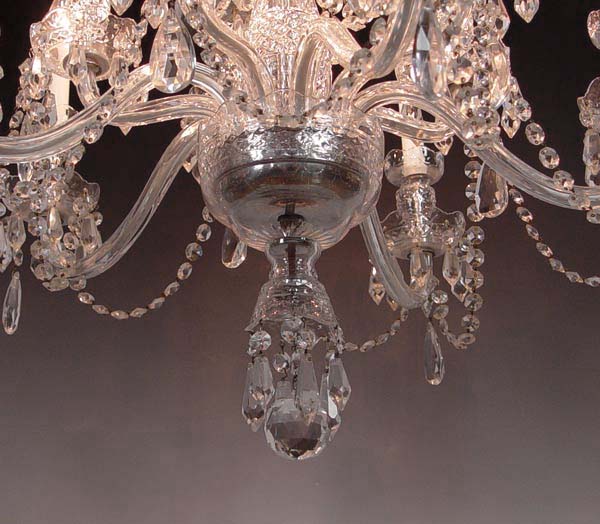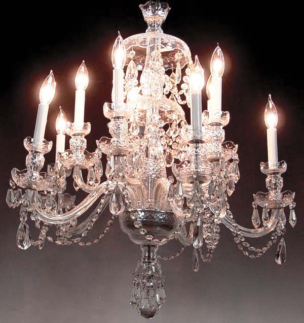 ELEGANT 10 LIGHT CRYSTAL CHANDELIER: Dripping in prisms, Approx. 31'' length, excluding the chain, 22'' wide.