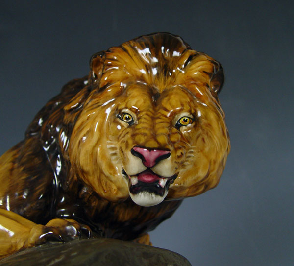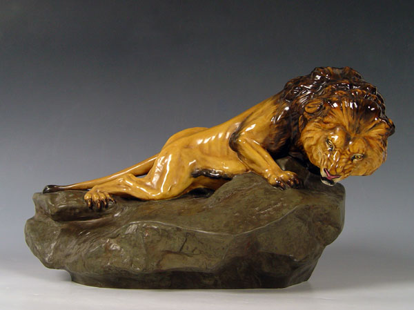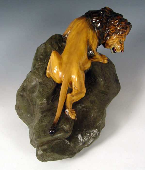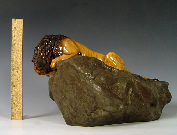 LARGE ROYAL DOULTON LION ON ROCK HN2641: Designed and signed by Charles Noke, 18'' long X 10'' tall.