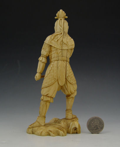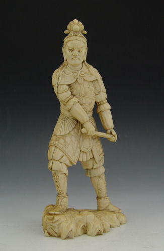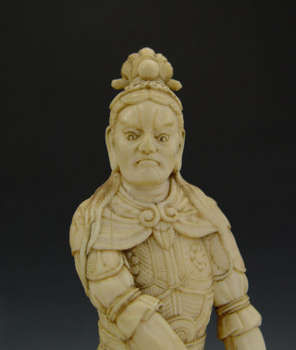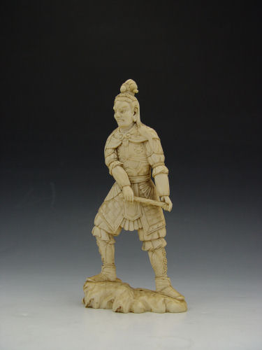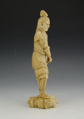 SIGNED JAPANESE FINELY CARVED IVORY WARRIOR: Male figure wearing partial suit of armor. 7'' h..