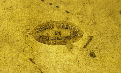 SUSSE FRERES FRENCH ENAMEL BRONZE FRAME: Signed with Susse Freres foundry marks, bronze with enamel. Easel back, 7 1/4'' x 5 3/4''.